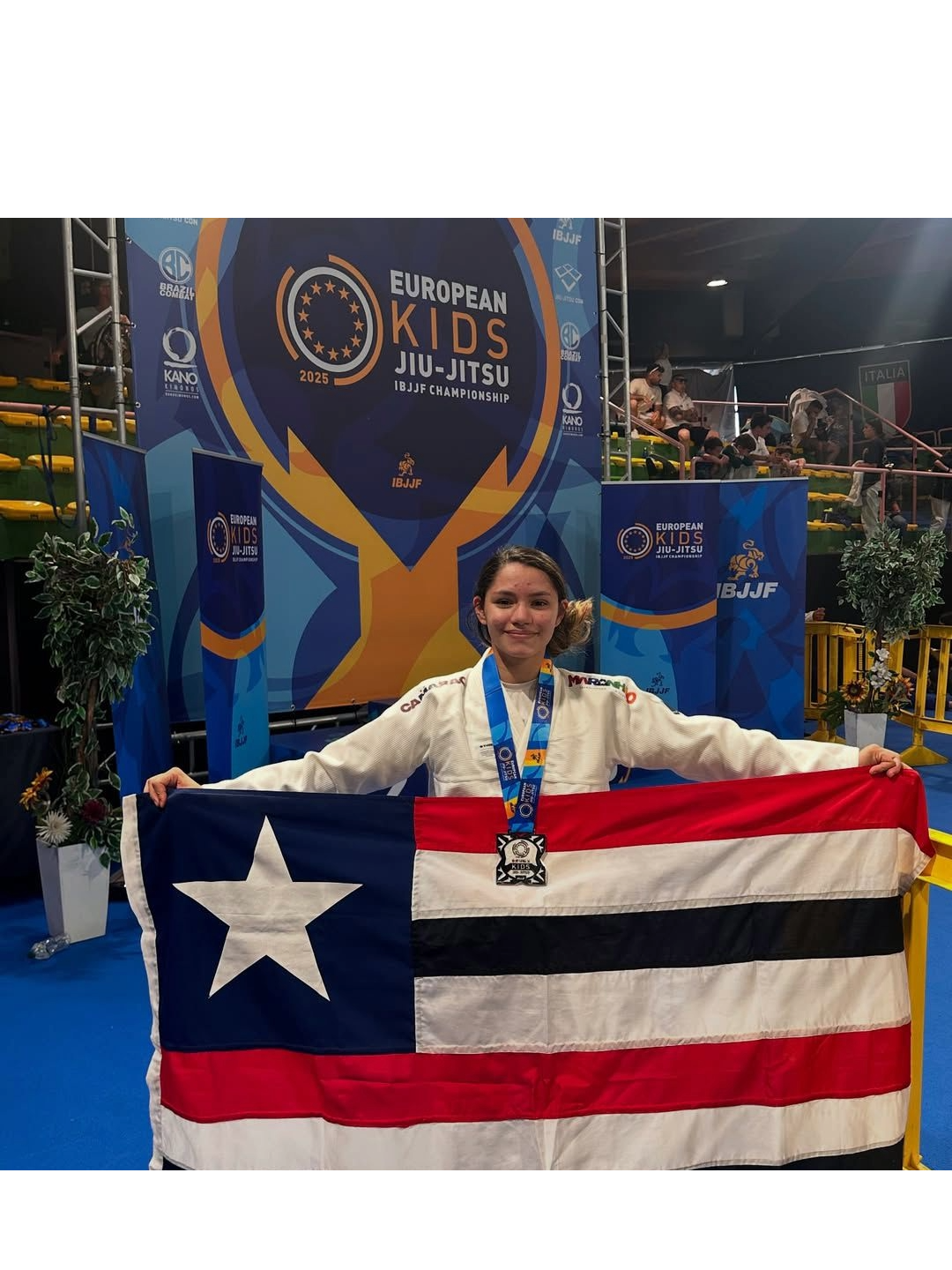 A jovem atleta maranhense Maria Clara Frota Araújo, de 13 anos, conquistou a medalha de prata na competição internacional de jiu-jitsu Europa Kids, realizada em Roma, Itália. Natural de Cantanhede (MA) e aluna do Colégio Militar 2 de Julho – Unidade XXIV, Maria Clara foi calorosamente recebida em sua cidade natal no dia 20 de maio, com um desfile em carro do Corpo de Bombeiros pelas principais ruas, acompanhada por estudantes, professores, mestres da academia Toca do Samurai e autoridades locais .