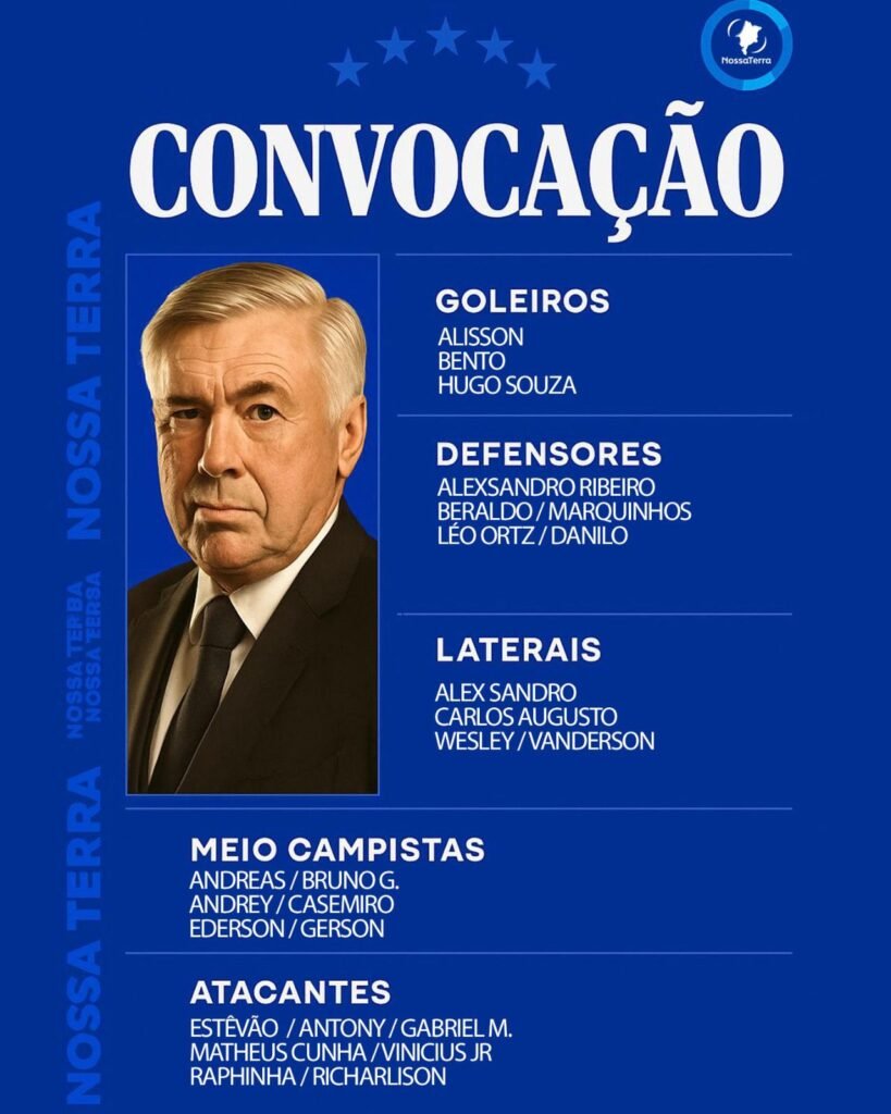 Entre os nomes chamados, um dos destaques é o jovem lateral-direito Wesley França, natural de Açailândia, no Maranhão. Atleta do Flamengo, Wesley já havia sido convocado anteriormente por Dorival Júnior e, mais uma vez, aparece entre os selecionados, agora sob o comando de Ancelotti.