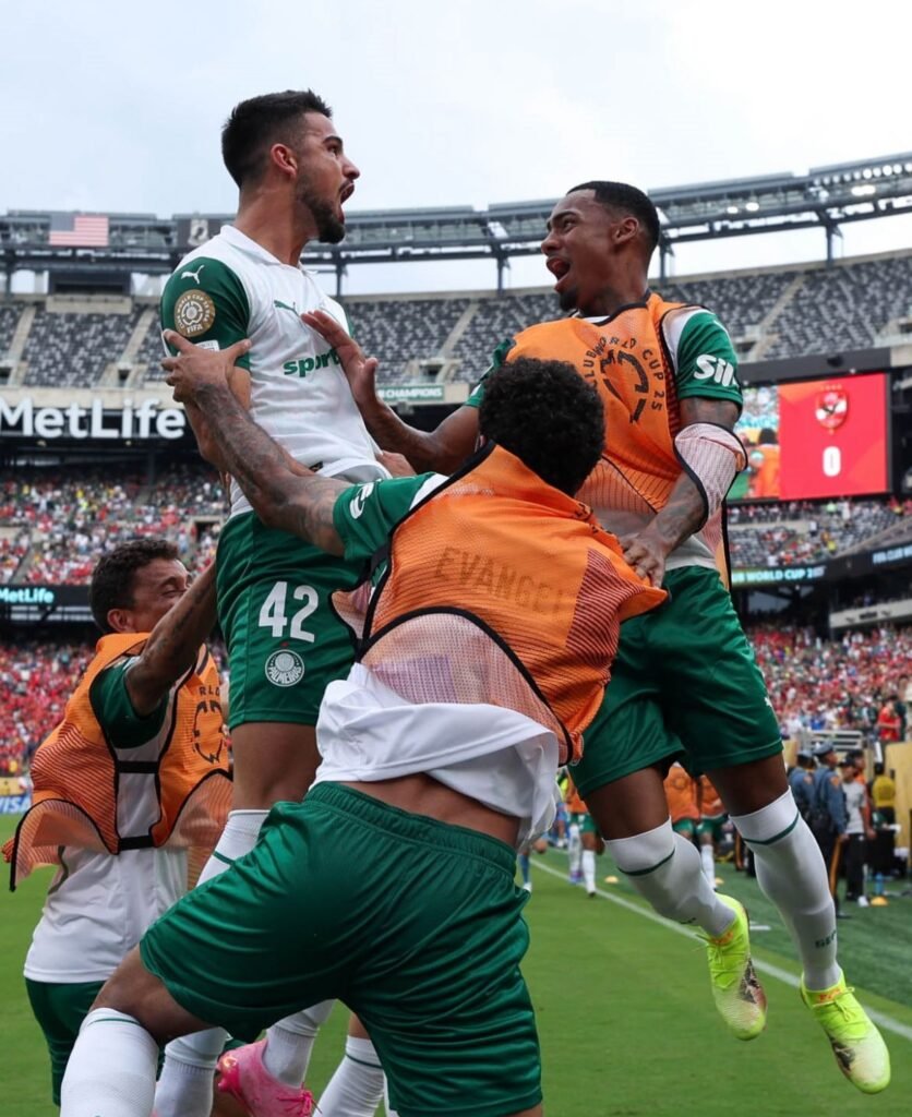 Em partida disputada em Nova Jersey, sob forte calor, o Palmeiras venceu o Al Ahly por 2 a 0 e confirmou sua força no torneio. O primeiro tempo foi equilibrado, com poucas chances claras devido ao desgaste físico provocado pelo clima. A melhor oportunidade foi do Verdão, quando Estêvão fez bela jogada individual e finalizou com perigo, aos 17 minutos. Aos 36, um susto: Raphael Veiga recebeu cartão vermelho após um carrinho, mas, após revisão no VAR, a decisão foi corrigida para cartão amarelo.