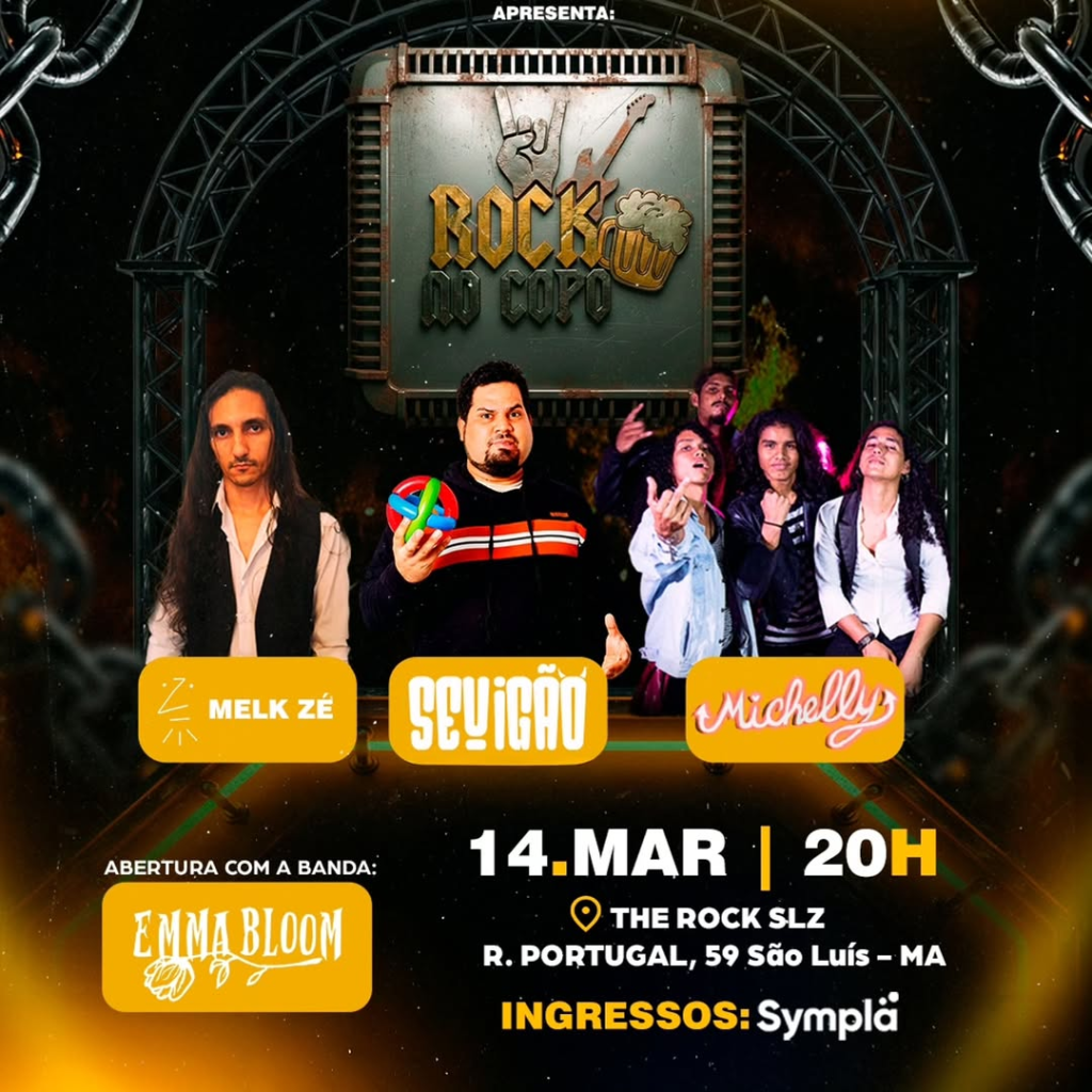 No dia 14 de março é o dia do Rock no Copo, com as atrações Seu Igão, Melk Zé, Michelly e Emma Bloom, no The Rock SLZ.